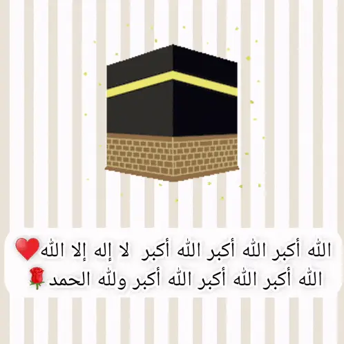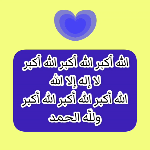 A graphic displaying Arabic religious phrases (Takbirat al-Eid) with a blue heart above, set against a yellow background.