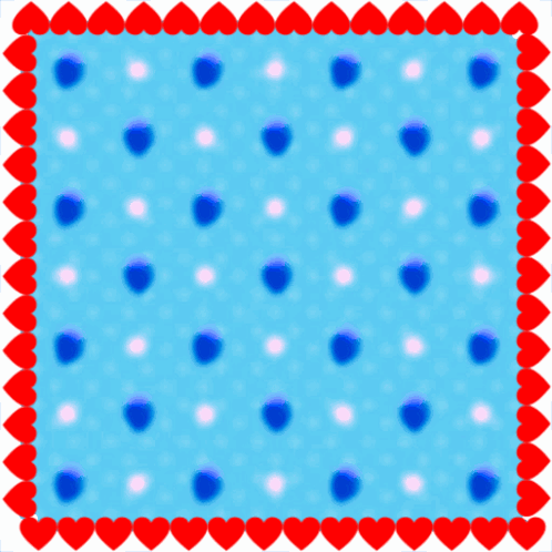 Arabic phrase 'Praise be to Allah, Lord of the Worlds' on a blue polka dot background with a red heart border.