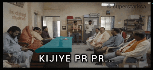 People in a meeting discussing 'PR PR' and 'Alhuaa PR' in a community setting.