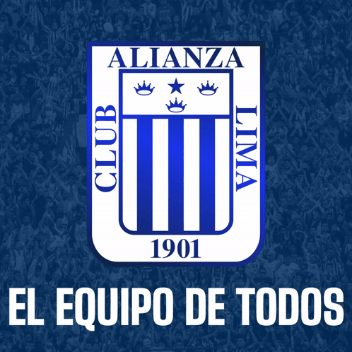 Alianza Lima football club logo, featuring blue and white stripes, crowns, and the slogan 'El Equipo De Todos'.