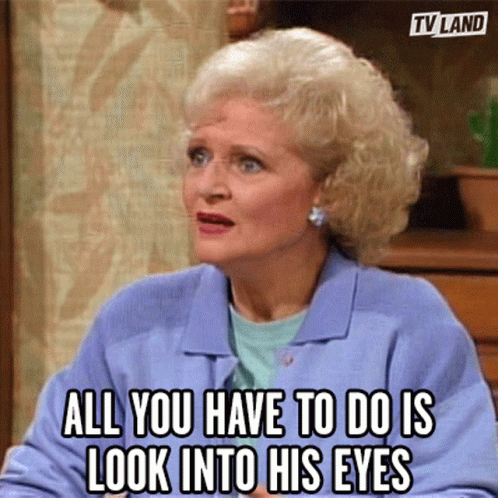 Betty White as Rose Nylund from Golden Girls says, 'All you have to do is look into his eyes.'