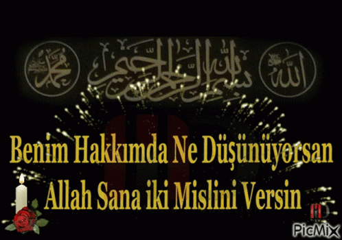 A message in Turkish: 'Whatever you think about me, may Allah give you double,' with Islamic calligraphy.