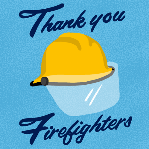 An illustration of a firefighter's helmet with a heartfelt 'Thank you Firefighters' message by Pablo4medina.