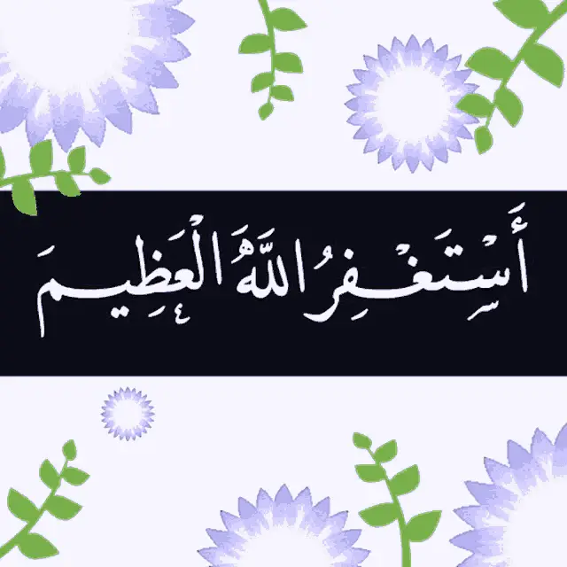 An animated prayer (dua) in Arabic on a yellow background, featuring hearts and purple roses, asking Allah for blessings and joy.