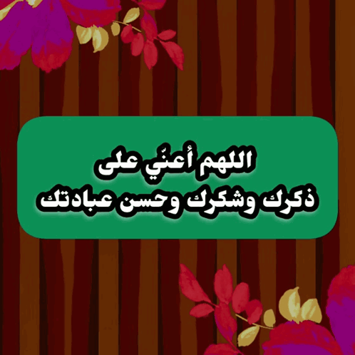 A beautiful Islamic prayer on a green sign, surrounded by vibrant floral patterns.