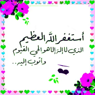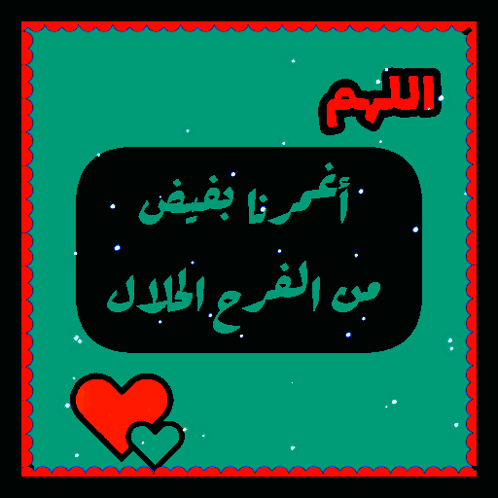 A heartfelt Arabic prayer, 'Oh God, immerse us in an abundance of lawful joy,' displayed on a vibrant green background with animated hearts and sparkles.