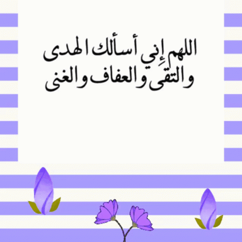 A beautiful Arabic prayer (dua) asking Allah for guidance, piety, chastity, and self-sufficiency, set against a purple and white background.