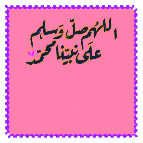 Animated pink background with Arabic calligraphy of 'Oh Allah, send prayers and peace upon our Prophet Muhammad' and blooming flowers.