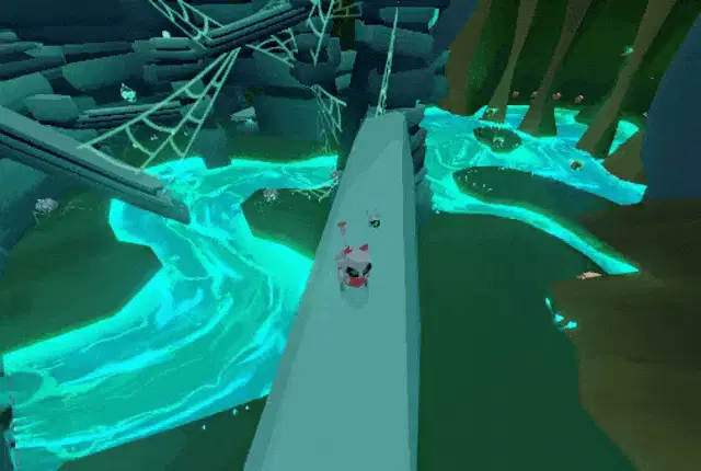 A serene river flowing through a lush green forest, overlaid with an Arabic prayer for guidance and steadfastness.