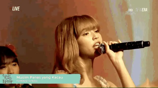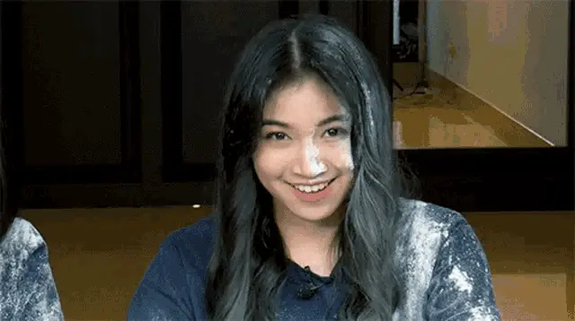 Alma JKT48 from the girl group JKT48 smiles and makes a cute pouting face.