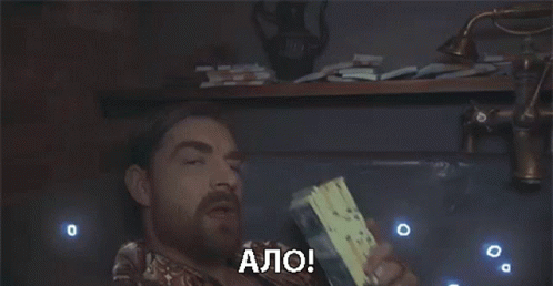 A man makes a 'money call' using a stack of cash as a phone, with 'АЛО!' displayed. Possibly Lil Dik from Gazgolder.