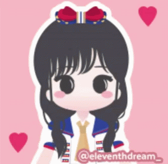 Chibi fan art of Aly from MNL48, depicted in an idol uniform with a red bow and a pink background.