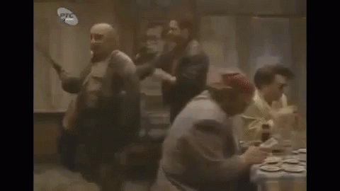 Men in a rustic room, one bald man interacts with another, possibly from the show 'Slozna Braca'.