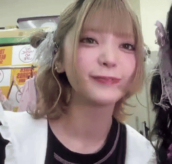 a girl with a plastic wrap around her head looks at the camera with a sign in the background that says " the cure "