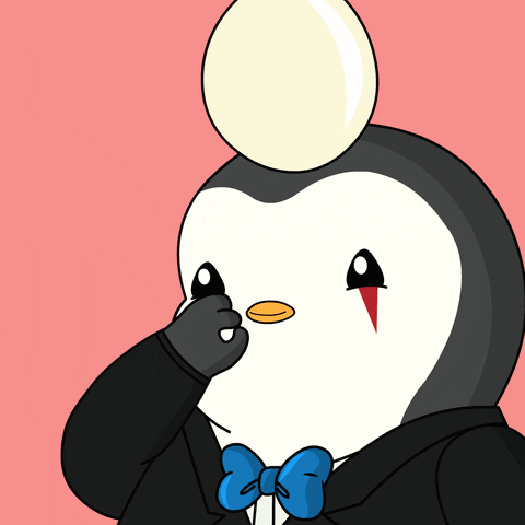 A dapper pudgy penguin in a suit and bow tie balances an egg, giving a 'chef's kiss' of perfection.