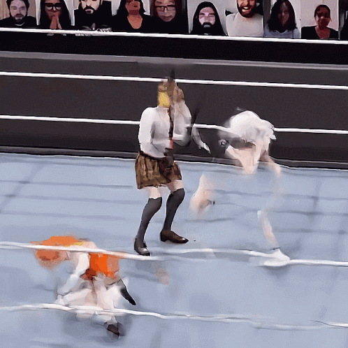 a painting of two women wrestling in a ring