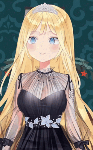 a girl with blonde hair and blue eyes wearing a black dress and a tiara