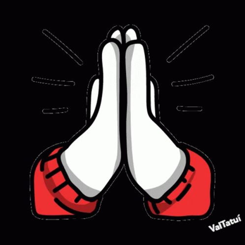 Amém Valtatui cartoon featuring hands folded in a reverent prayer gesture.