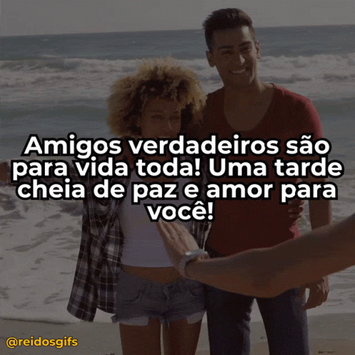 Friends hugging on a beach with a message about true friendship and a peaceful afternoon.