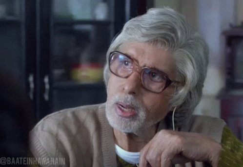 Amitabh Bachchan, known for Piku with Deepika Padukone, shows an expressive look with glasses and grey hair.