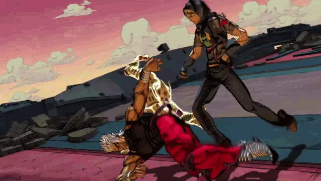 Man in a chaotic situation exclaims 'This is fucked up here!' as he falls, with 'VIVO' logo visible.
