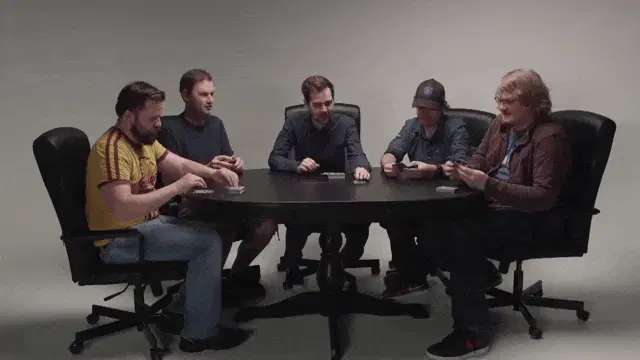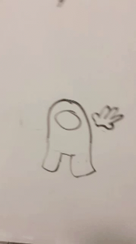 A hand sketches an Among Us character and a separate hand shape on white paper.