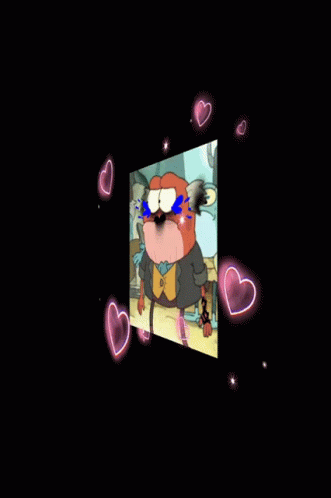 An animated character from Amphibia, Hop Pop, with emo-style edits and heart effects.