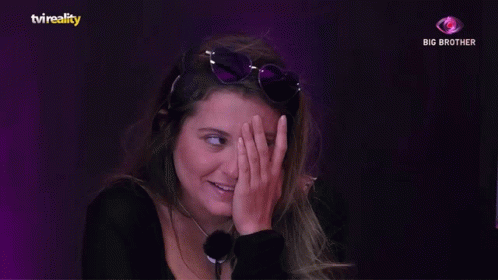 Ana Catharina from Big Brother Portugal covers her face, appearing emotional or embarrassed.