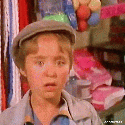 A young boy, possibly from 'El Ganador' pelicula, reacts with a surprised expression in a store setting.