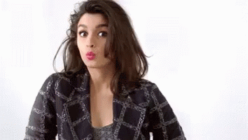 Alia Bhatt making a funny, puckered face while wearing a stylish plaid jacket, showing a playful expression.