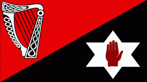A flag combining the Irish harp and the Red Hand of Ulster within a six-pointed star, representing Anarchist Ulster.