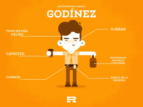 An infographic illustrating the stereotypical characteristics of a 'Godínez' (office worker) in Mexico.