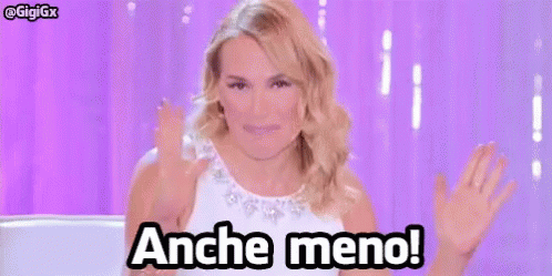 Italian TV host Barbara D'Urso says 'Anche meno!' with a dismissive gesture.