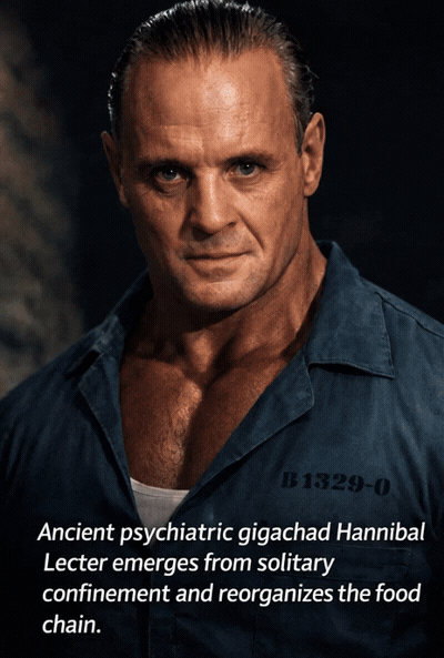 Ancient psychiatric gigachad Hannibal Lecter emerges from solitary confinement and reorganizes the food chain.