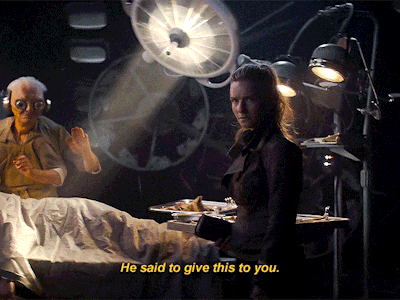 Vel Sartha in Andor receives a mysterious message in a dimly lit, medical-like room.