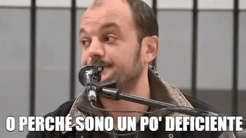 Andrea Biggiogero from Un Giorno In Pretura saying 'Or because I'm a bit deficient' into a microphone.