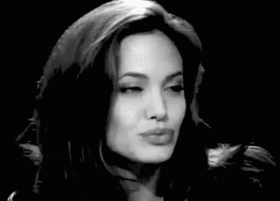 Angelina Jolie in a black and white clip, looking thoughtful and contemplative with various expressions.