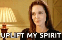 Angelina Jolie with the text 'Uplift My Spirit' on screen, conveying a positive message.
