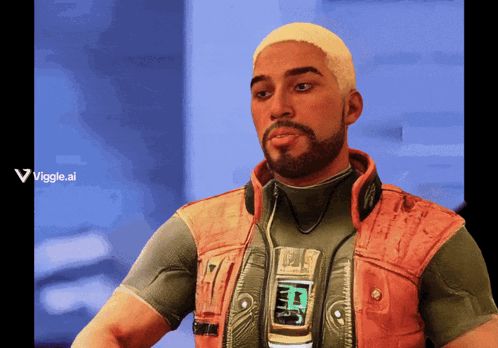 a man with a beard and headphones stands in front of a screen that says ' viggle.ai '