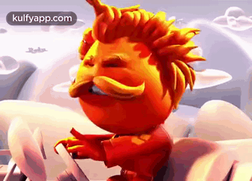 An animated orange character with a large mustache and spiky hair roars in anger, showcasing a fierce expression.