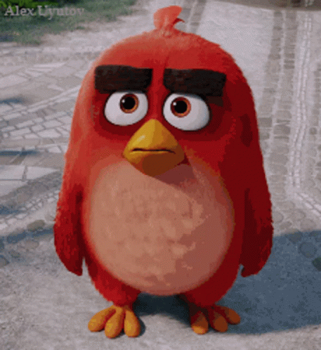 Red from Angry Birds does a dramatic facepalm, expressing frustration or disbelief.