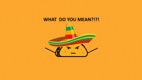 An animated angry taco character wearing a sombrero, with 'What Do You Mean' text.