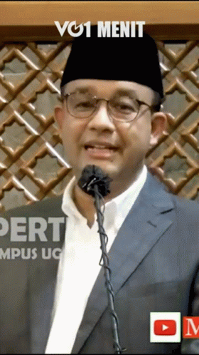 Anies Baswedan, an Indonesian politician, delivers a speech at a podium.