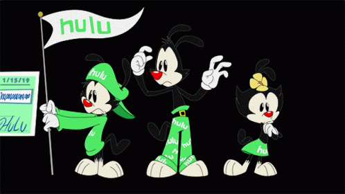 The Animaniacs, Yakko, Wakko, and Dot, celebrate receiving a massive 'One Hundred Billion' check from Hulu.