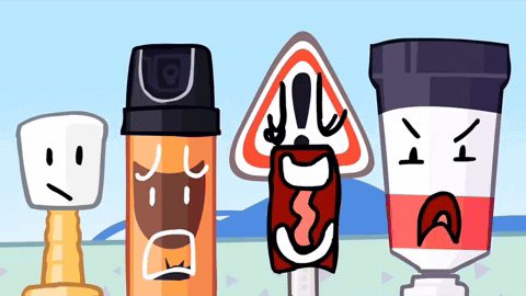Animatic Battle characters GreenyGuy, Object Fool, and others show shocked and angry expressions in a group.