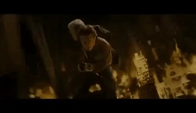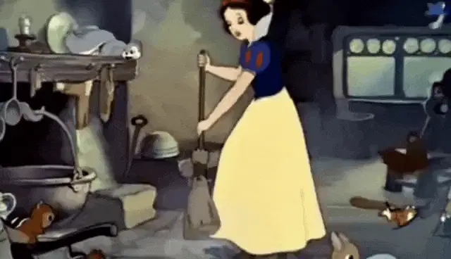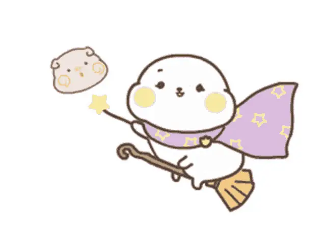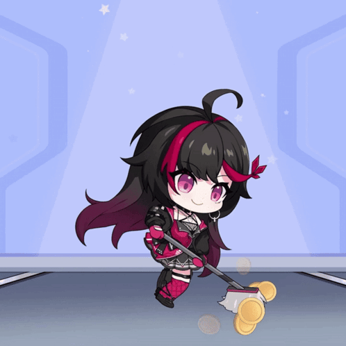Chibi Anka from Tower of Fantasy sweeps up golden coins with her broom in a cute animation.