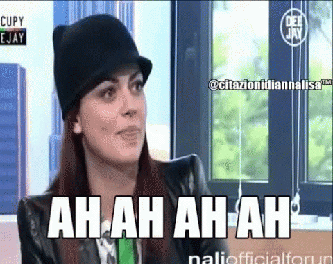 Annalisa, wearing a black hat and leather jacket, shares an infectious 'Ah Ah Ah Ah' laugh.