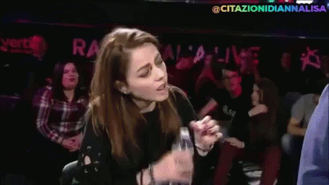 Annalisa drinks water from a bottle, then reacts with the Italian phrase 'Che Cazzo Stai A Di''.