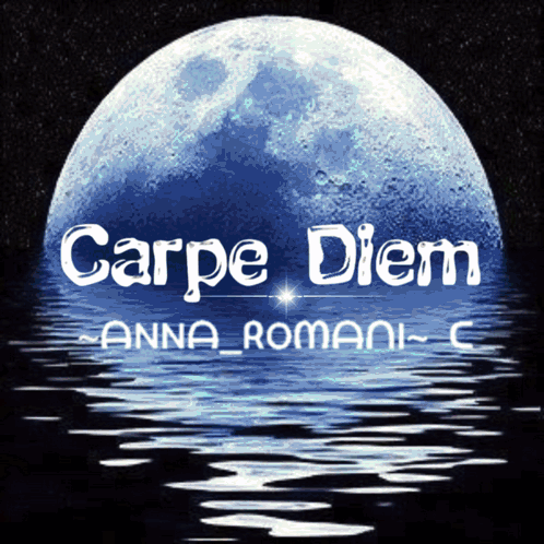 Anna Romani's 'Carpe Diem' graphic features a full moon reflecting on water, with changing colors.