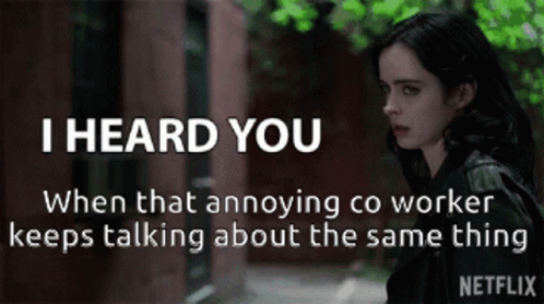 Jessica Jones' exasperated reaction to an annoying co-worker repeating the same thing.